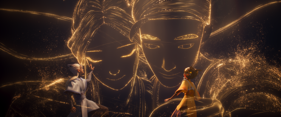 传统文化与现代叙事,引发国际对话与共鸣。电影《落凡尘》取材自中国民间传说《牛郎织女》,讲述了金风与玉露兄妹为守护人间,携手收复二十八星宿、补天救世的奇幻冒险。影片将传统神话与现代视觉语言结合,既有星宿流转的缥缈天庭,也有火锅、奶茶、舞龙舞狮等烟火气十足的人间场景,构建出一个“神人共存”的东方奇幻世界。其视觉呈现上,通过巧妙融合“编织”“布匹”文化与国潮元素,每一帧都似流动的东方画卷,而“以心弦补天”的高潮段落,更以极具想象力的美学设计,将中国神话的浪漫主义推向极致。