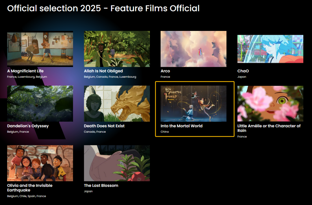 4月23日(法国当地时间),被誉为“动画界奥斯卡”的法国昂西国际动画电影节(Annecy International Animation Film Festival)公布2025年入围片单,由广东咏声动漫股份有限公司(以下称“咏声动漫”)出品的国漫电影《落凡尘》入围长片主竞赛单元,并成为该单元唯一入围的中国动画作品。这部以中国传统文化为内核的动画电影,将在6月8日至14日电影节期间进行展映,向全球观众展现东方美学的独特魅力与中国动画的创作实力。